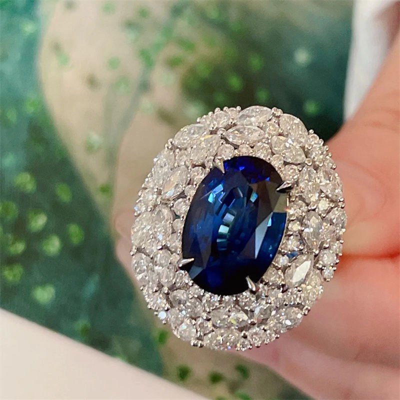 Sea blue water drop pigeon eggs silver high-grade sense ring